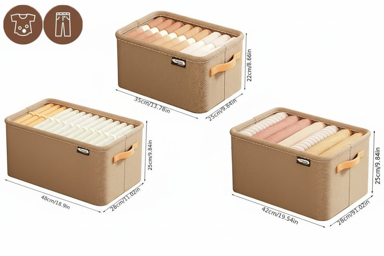 O Organizador de Roupas Dobrável Premium foi desenvolvido para proporcionar praticidade sem abrir mão do estilo. Seu design minimalista e sofisticado harmoniza com qualquer ambiente, enquanto sua estrutura funcional mantém suas roupas bem distribuídas e acessíveis.